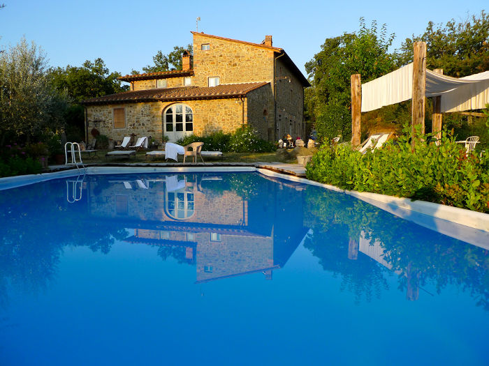 within a 30-kms radius of Florence, Siena and Arezzoin a vast natural garden. The villa was built more than 300 years ago; the restoration has kept the spirit of the house, respecting the original architecture with use of hand-made special materials following bio-architecture parameters. The villa is in the middle of a 13-hectare (32 acres) private botanical garden (Giardino del Belvedere) with olive trees, meadows, forest of ancient oaks trees, anamphitheatre and a private swimming pool. Our private villa hosts a single group of guests at a time.